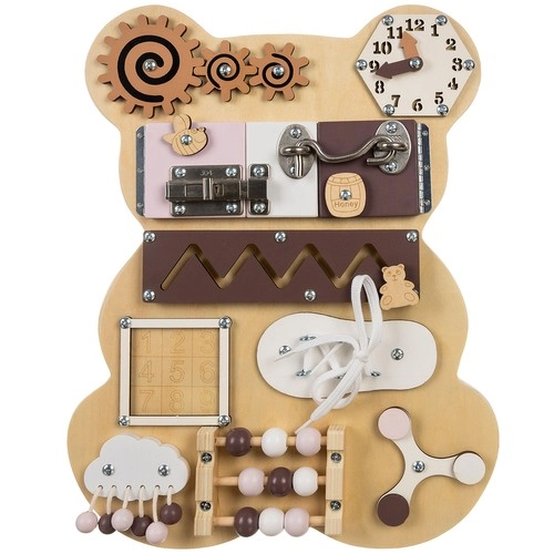 Kruopščiai nušlifuota mediena, lygūs kraštai ir tvirta konstrukcija užtikrina saugų ir ilgalaikį žaidimą. Motoriniai žaislai vaikams nuo 1 metų iki priešmokyklinukų yra ekologiški, malonūs liesti ir puikiai tinka žnyplinio suėmimo, rūšiavimo, dėliojimo ir vėrimo treniruotėms. Išsirinkite medinius motorinius žaislus, kurie padės lavinti smulkiąją motoriką ir mažųjų tyrinėtojų pasitikėjimą savimi.