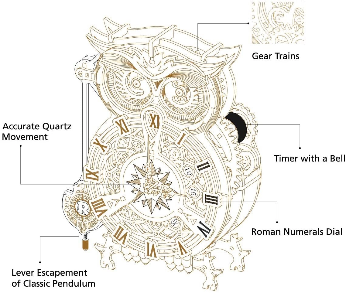 Pristatome unikalų 3D mechaninį pelėdos laikrodį, kuris žavi ne tik išskirtine išvaizda, bet ir tikra laiko matavimo funkcija. Šis gaminys – tobulas estetikos ir techninio išpildymo derinys, puiki dovana kiekvienam rankdarbių entuziastui.
