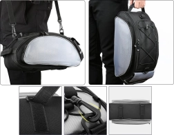 Mėgaukitės išvykomis dviračiu su šiuo praktišku krepšiu, kuris lengvai tvirtinamas ant bagažinės. Jis siūlo pagrindinį skyrių su vidine kišene ir dvi šonines kišenes su užtrauktuku, kad padidintų talpą.