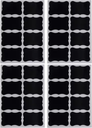 Rinkinyje 24 etiketės, kurios išdėstytos 4 lapuose. Iš PVC pagamintos etiketės lengvai nusiima ir gali būti naudojamos pakartotinai. Nenaudoti po vandeniu ir nedėti į indaplovę.