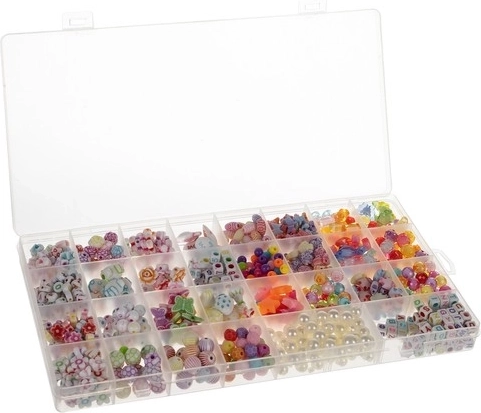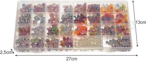 Bižuterijos gamybos rinkinys mažiesiems kūrėjams. Rinkinyje yra 900 įvairių formų ir spalvų karoliukų, leidžiančių kurti apyrankes, vėrinius ir kitus papuošalus.