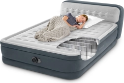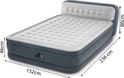 Dvisluoksnė pripučiama lova INTEX su Dura-Beam Fiber-Tech technologija siūlo didelę miegojimo zoną, integruotą atlošą ir įmontuotą elektrinį siurblį greitam pripūtimui ir išleidimui. Aukštis nuo grindų 46 cm ir minkšto veliūro paviršius užtikrina komfortą, stabilumą ir tvarkingą išvaizdą. Didžiausia leistina apkrova 272 kg garantuoja patikimą miegą dviem asmenims.