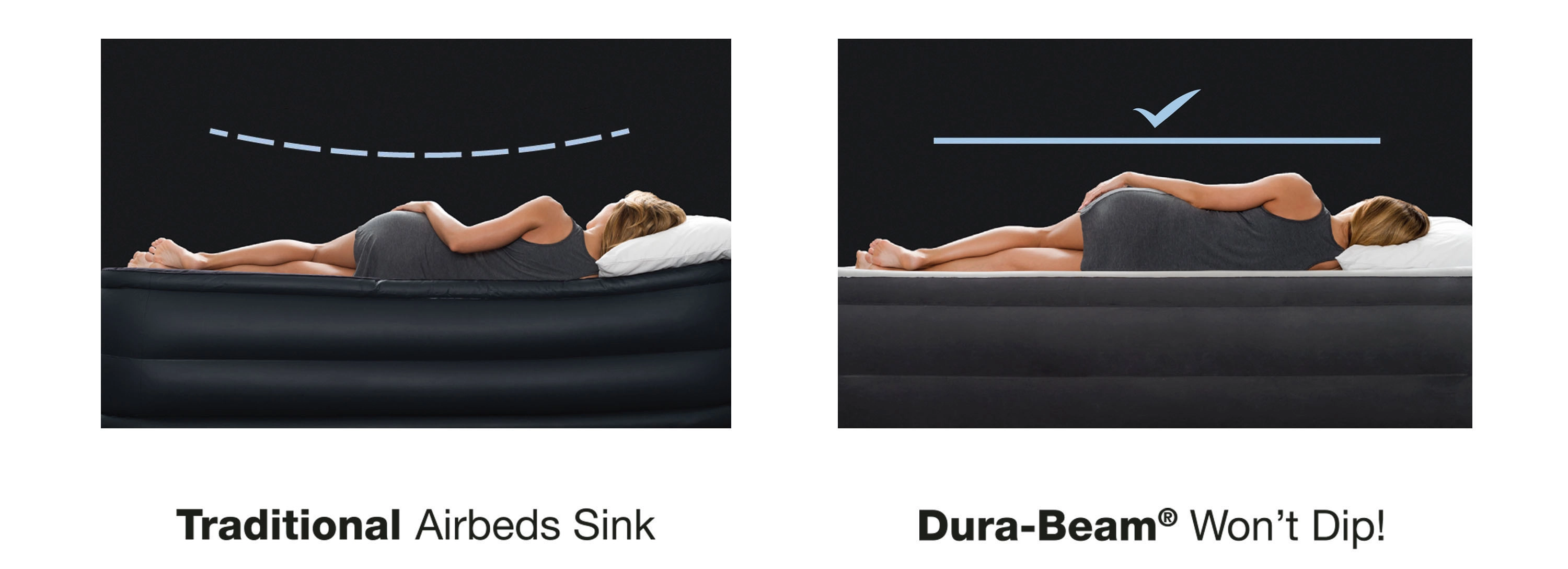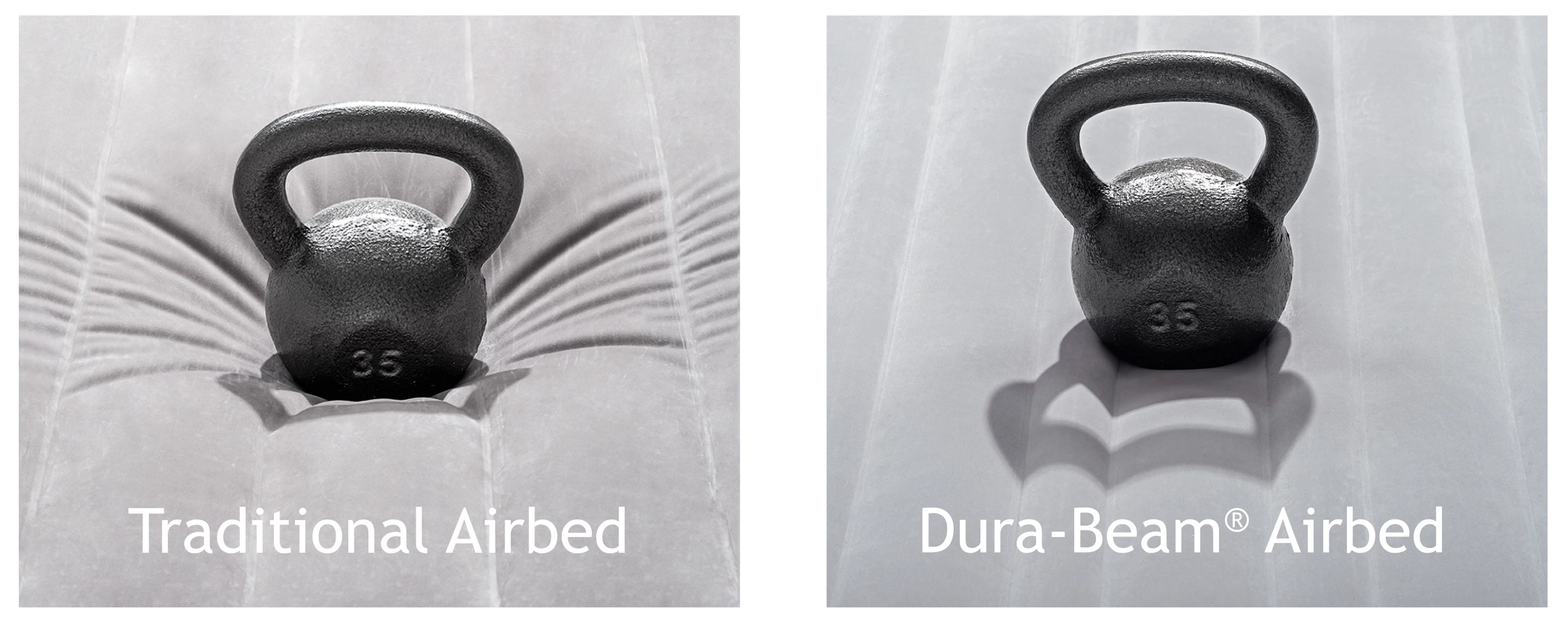 Mėgaukitės tvirtos ir kartu patogios pripučiamos lovos komfortu – ji tinka tiek svečiams, tiek kelionėms. Dėl Fiber-Tech technologijos su poliesterio pluoštais čiužinys yra standesnis, ilgaamžiškesnis ir tolygiai paskirsto svorį per visą plotą. Banguotas paviršius ir kamerinė konstrukcija padeda išlaikyti tinkamą stuburo padėtį ir sumažina nugaros bei kaklo skausmų riziką.