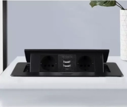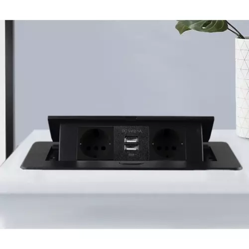 Gaukite tvarkingą ir saugią prieigą prie maitinimo ten, kur jos labiausiai reikia. Ši įleidžiama lizdų juosta sujungia 2 Schuko tinklo lizdus ir 2 USB prievadus 5 V/2,1 A kompaktiškame korpuse, kuris elegantiškai pasislepia stalviršyje ar darbo plokštėje. Paspaudus mygtuką skydelis sklandžiai išsikelia virš paviršiaus, o po naudojimo lengvai paslepiamas.