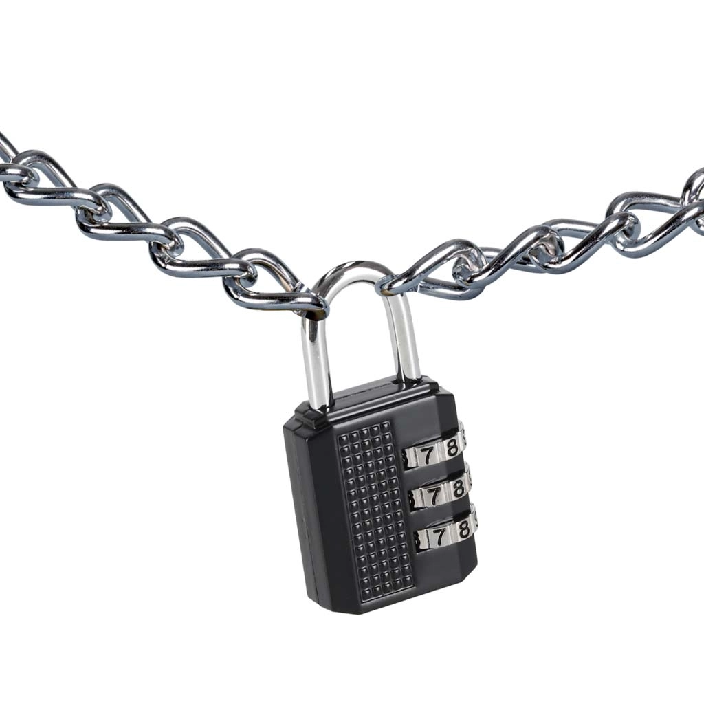 Tvirtas metalinis lankelis ir tvirtas korpusas su tekstūruotu suėmimu užtikrina patikimą naudojimą net su pirštinėmis. Spynelė siūlo apsaugą be rakto – jokių rūpesčių dėl rakto, tereikia prisiminti kodą.