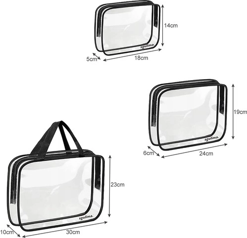 Praktiškas trijų permatomų kosmetinių rinkinys S/M/L dydžių tobulai daiktų tvarkai kelionėse ir namuose. Pagamintos iš patvaraus BPA neturinčio PVC, jos yra atsparios vandeniui, lengvai valomos ir dėl skaidraus dizaino iškart matysite turinį. Didžiausia kosmetinė turi tvirtą rankeną ir gali būti naudojama kaip nedidelė rankinė paplūdimiui ar sporto salei.