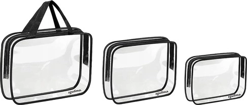 3 permatomų kosmetinių ir smulkmenų krepšelių rinkinys padės palaikyti tvarką lagamine, kuprinėje ir vonios kambaryje. Skirtingi dydžiai leidžia sumaniai atskirti makiažo priemones, tualeto reikmenis ir kelioninius buteliukus. Skaidri medžiaga paspartina saugumo patikrą oro uoste ir palengvina reikiamų daiktų paiešką.