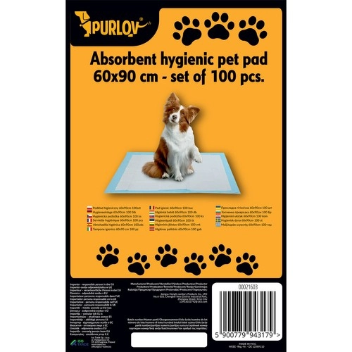 Vienkartiniai higieniniai paklotai šunims ir katėms Purlov patikimai saugo grindis ir guolius. Daugiasluoksnė struktūra ir nelaidi apatinė danga greitai sugeria ir nepraleidžia skysčių. Pakuotėje yra 100 paklotų, kurių dydis 60 × 90 cm, ir dar 2 ritiniai maišelių ekskrementams (30 vnt.) patogiam vedžiojimui. Greita absorbcija, nepralaidūs kraštai ir praktiniai priedai pakuotėje.