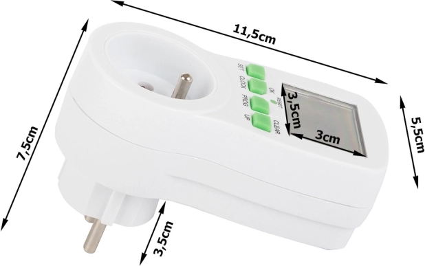 Praktiškas skaitmeninis lizdinis laikmatis su didelu LCD ekranu leidžia automatiškai įjungti ir išjungti prietaisus pagal nustatytą programą. Taupo energiją, didina saugumą ir patogumą, siūlo iki 16 programų, atsitiktinio įjungimo režimą buvimo simuliacijai ir atidėjimo (atgalinio skaičiavimo) funkciją. Didžiausia apkrova 3680 W / 16 A ir tikslus laiko valdymas 24/12 h režimu.