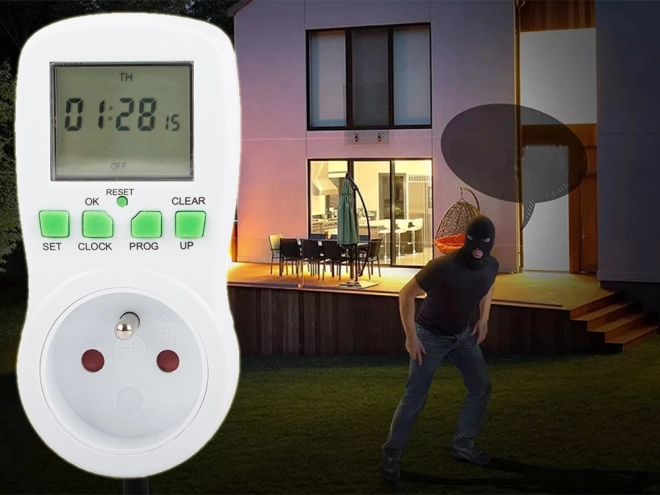 - Atsitiktinis įjungimas (18:00–06:00), atgalinis skaičiavimas (COUNTDOWN), vasaros/žiemos laikas