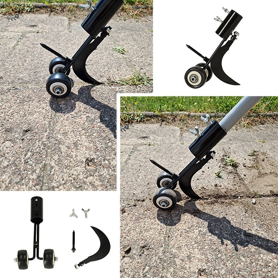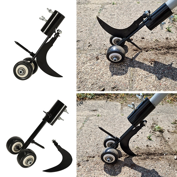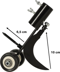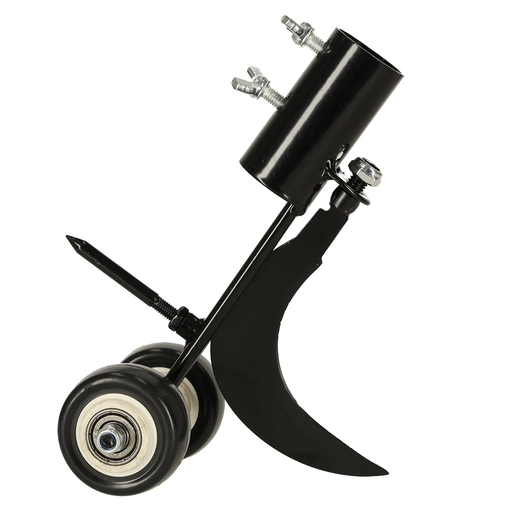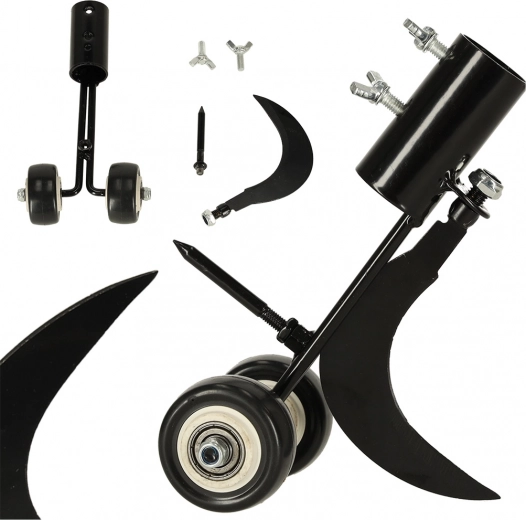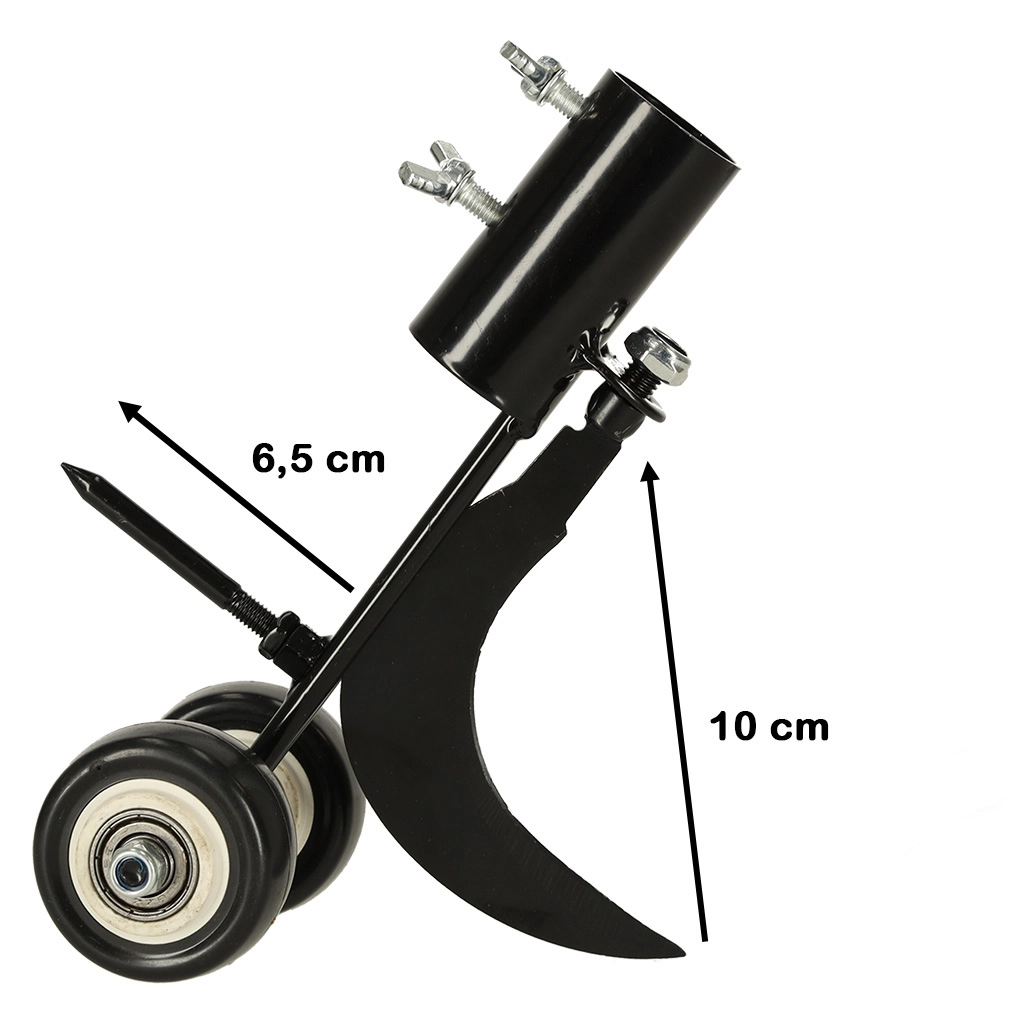 Dviviečiai ratukai suteikia įrankiui stabilumo ir tikslų vedimą palei kraštą, todėl dirbsite greičiau ir pasieksite švarų rezultatą. Korpusas iš patvaraus plieno su apsaugine antikorozine danga atlaiko ilgalaikį naudojimą lauke. Lengvai pritvirtinsite prie savo koto, kurio skersmuo iki 28 mm, kad darbas būtų kuo patogesnis.
