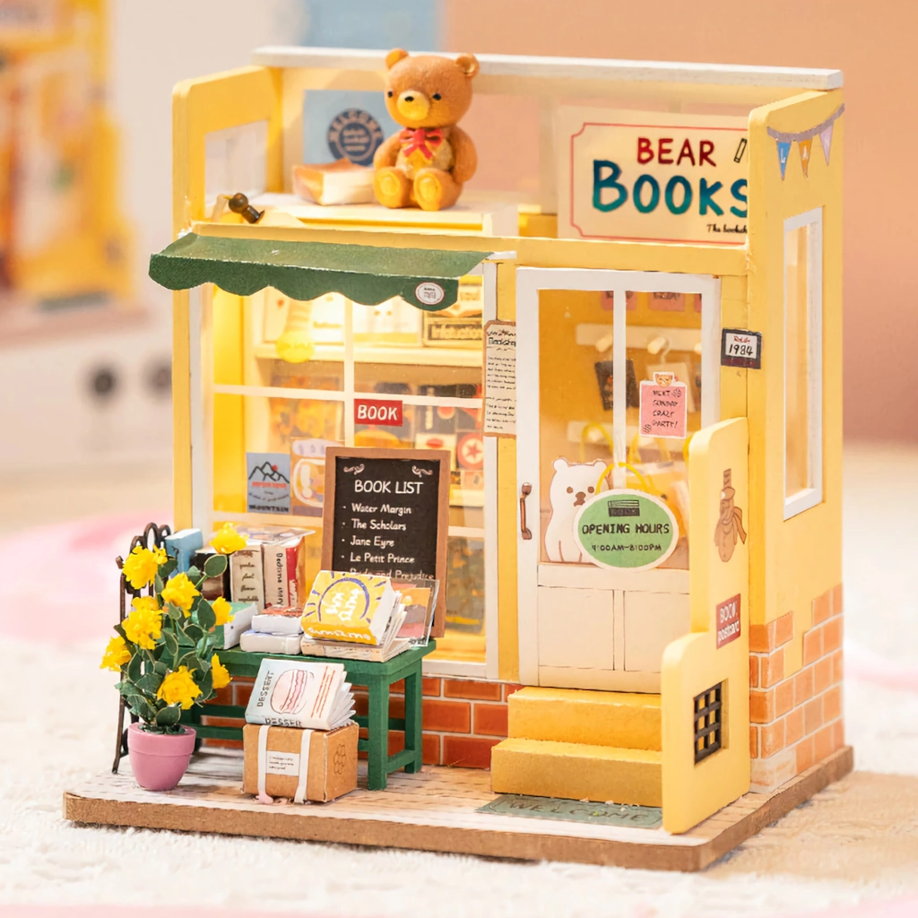 Atraskite detalių miniatiūrų žavesį su išskirtiniu modeliu Meškiuko knygynas. Rinkinyje rasite realistinių aksesuarų, knygų, dekoracijų ir švelnų apšvietimą, kuris po surinkimo sukurs jaukų kampelį bet kuriame kambaryje. Viskas apgalvota taip, kad statyba teiktų malonumą, o rezultatas išsiskirtų kaip stilinga dekoracija.