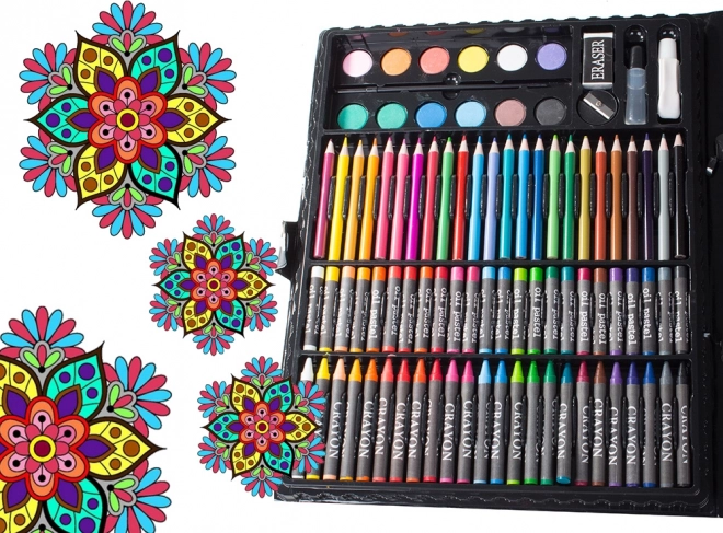 Šis universalus kūrybinis rinkinys siūlo platų priemonių pasirinkimą, su kuriomis lengvai paversite idėjas spalvingais kūriniais. Viskas sudėta į tvirtą plastikinį lagaminėlį su rankena, tad visos priemonės vienoje vietoje ir visada po ranka – namuose, mokykloje ir kelionėse.