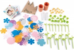 Gėlių gaminimo įrenginys su 104 priedais suteikia kūrybišką žaidimą ir turtingą komplektaciją. Įeina lipdukai dekoravimui ir aiškus vadovas su idėjomis. Gėlės kuriamos iš medžiaginių žiedlapių, kurie yra iš anksto perforuoti, kad mažajam floristui būtų patogu.