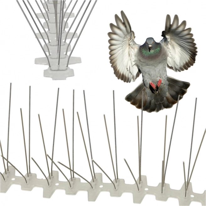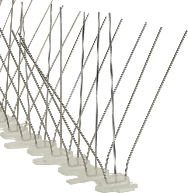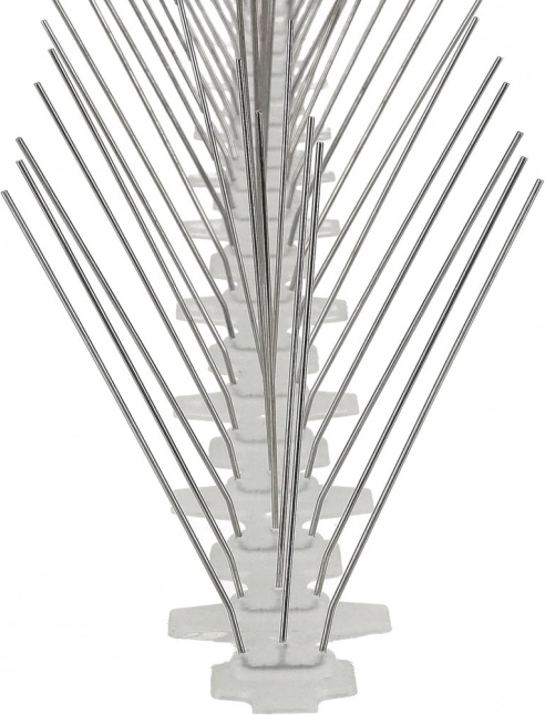 Efektyviai apsaugokite balkoną, palangę ar karnizą nuo nepageidaujamo paukščių tupėjimo. Metaliniai spygliai su plastikiniu pagrindu suteikia humanišką, ilgalaikę ir nepastebimą apsaugą nuo balandžių ir kitų rūšių. Paprastas montavimas ant įvairių paviršių naudojant klijus arba varžtus, patvari nerūdijančio plieno konstrukcija ir iki 4 cm pločio danga užtikrina patikimą efektą nežeidžiant paukščių.