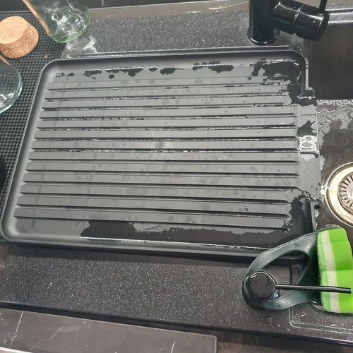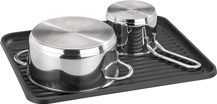Specialiai suformuotas padėklas su grioveliais ir šoniniu nutekėjimu nukreipia vandenį tiesiai į kriauklę. Taip stalviršis išlieka sausas ir švarus.