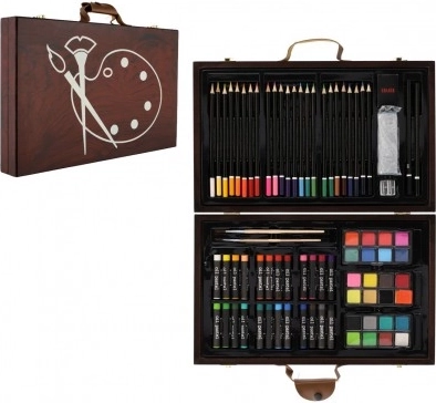 Šis kūrybinis rinkinys yra idealus sprendimas visiems mažiesiems menininkams. Jame yra iš viso 79 vienetai pagrindinių dailės reikmenų, kruopščiai sudėtų į praktišką medinį lagaminėlį.