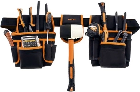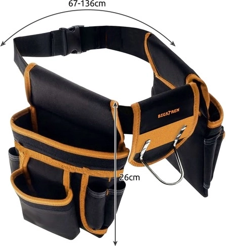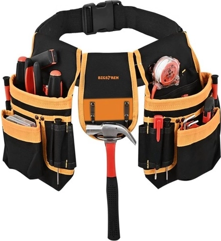 „Bigstren“ įrankių diržas turi 22 kišenes, įskaitant dvi kilpas ir plaktuko laikiklį, todėl galima saugiai laikyti ir nešti įvairius įrankius, tokius kaip atsuktuvai, raktai, repliės, matavimo juostos ir net elektriniai įrankiai.