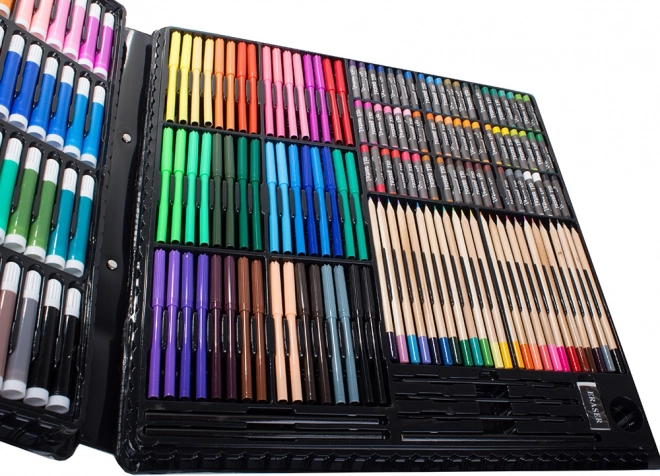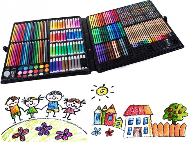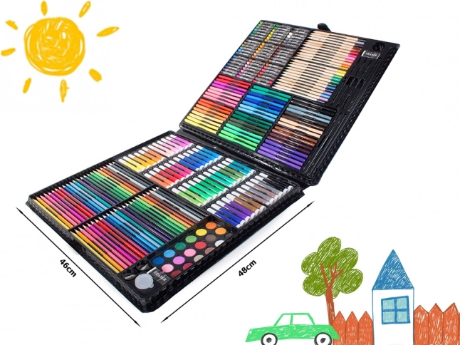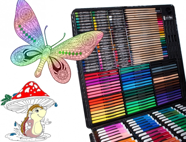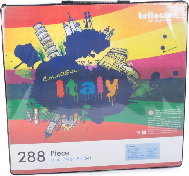 Meno tapybos rinkinys vaikams ir kūrybos entuziastams siūlo pilną sprendimą piešimui ir tapybai. Jame yra 288 įvairūs elementai, įskaitant pieštukus, flomasterius, aliejinius pastelius ir akvarelinius dažus, viskas sudėta į praktišką plastikinį lagaminėlį.