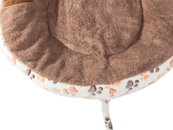 Dėl apvalios formos guolis tinka bet kuriam interjerui ir siūlo paaukštintus kraštus galvos ir kaklo atramai, kas sustiprina saugumo jausmą.