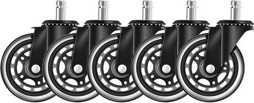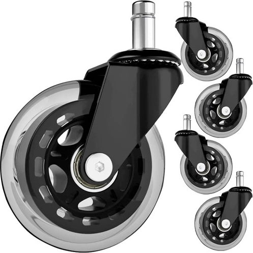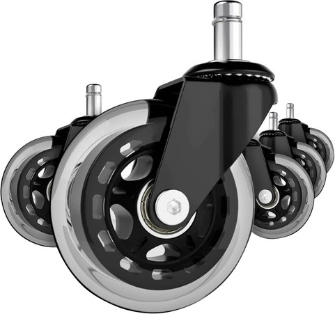 Pristatome penkių biuro ratukų rinkinį, kuris pavers jūsų esamą biuro ar žaidimų kėdę elegantišku ir funkcionaliu sprendimu. Dėl guminės konstrukcijos šie ratukai užtikrina tylų judėjimą ir apsaugo visas grindų dangas.