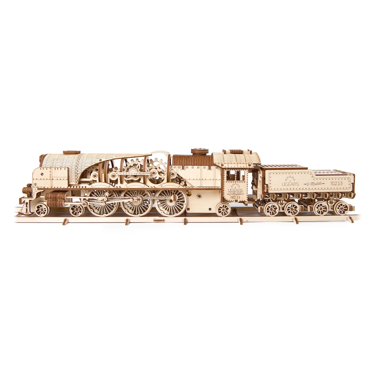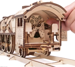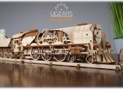 UGEARS V-Express – išskirtinė medinė konstravimo rinkinio dėlionė reikliems, jungianti klasikinės geležinkelio romantikos žavesį su išmone paremtu mechanizmu. Atviras lokomotyvo „korpusas“ leidžia stebėti pavarų, krumpliaračių ir švaistiklių mechanizmo darbą veiksme. Dėl užsukamo variklio modelis iš tiesų važiuoja ir suteikia realistišką važiavimo patirtį, įskaitant laisvąją eigą ir atbulinę eigą.