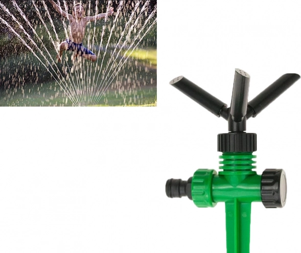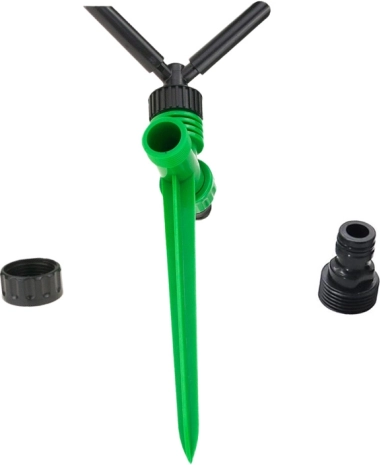 Sukamoji galva su trimis rankomis tolygiai paskirsto vandenį per visą veją ir lysves. Idealu reguliariam laistymui be sausų plotų.