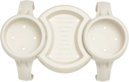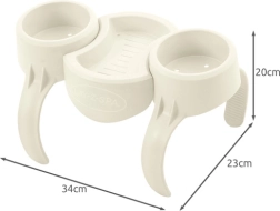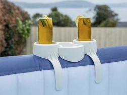 Išmanus aksesuaras malonioms akimirkoms sūkurinėje vonioje: dvigubas gėrimų laikiklis su centriniu padėklu. Jame yra dvi apvalios vietos taurėms, skardinėms ar buteliams ir per vidurį – praktiška vieta smulkmenoms: akiniams, išmaniajam telefonui ar užkandžiams. Patvari PP/ABS medžiaga atspari vandeniui ir saulei.