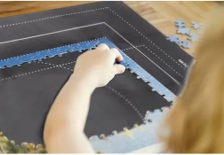 Dėlionių kilimėlis pagamintas iš poliesterio, kad būtų lengva susukti ir pernešti. Pripučiamas vamzdelis ir trys lipnūs dirželiai užtikrina, kad vamzdelis išliks vietoje.