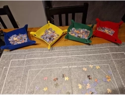 Kilimėlis pateikiamas praktiškame krepšyje su reguliuojamu dirželiu, kad būtų patogu transportuoti. Taip pat yra pompa su dviem antgaliais pripūtimui. Apskritai, tai puikus rinkinys kiekvienam dėlionių entuziastui, norinčiam tvarkingai ir saugiai laikyti savo detales.