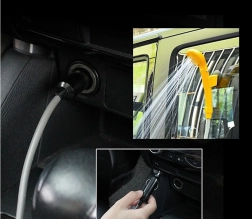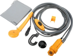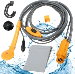 Šis nešiojamas kelioninis dušas maitinamas iš standartinio 12 V automobilio lizdo, todėl lengvai naudosite automobilyje, kemperyje, laive ar sklype, kur turite prieigą prie akumuliatoriaus. Dėl ilgo maitinimo kabelio ir žarnos juo patogu manipuliuoti, o prausimasis vyksta greitai.