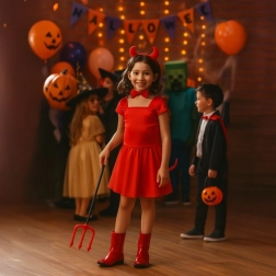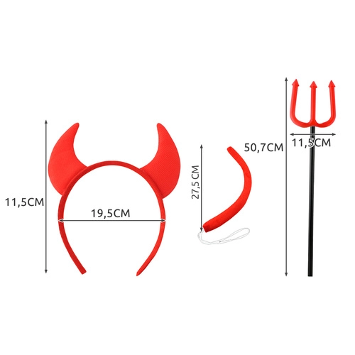 Stilingas velniuko kostiumas sodrios raudonos spalvos akimirksniu pakeis tiek vaiką, tiek suaugusįjį. Dėl minkštų medžiagų ir tamprių tvirtinimų aksesuarus lengva užsidėti, jie maloniai laikosi visos pramogos metu. Rinkinys idealiai tinka žaidimams namuose, mokyklos renginiams, fotosesijoms ir vakarėliams.