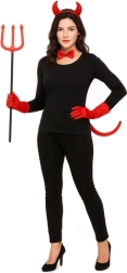 Pilnas velniuko kostiumas vaikams ir suaugusiesiems su 4 aksesuarais: ragai lankelyje, kaspinas, uodega ir trišakis. Universalaus dydžio su elastinėmis gumelėmis, užtikrinančiomis patogų dėvėjimą. Puikus pasirinkimas Helovinui, karnavalui, gimtadienio vakarėliams ar teminėms šventėms – akimirksniu susikurkite išraiškingą ir linksmą kostiumą.