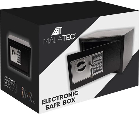 Praktiškas elektroninis seifas MALATEC XL derina patogų kodinį užraktą su mechaninio rakto užtikrintumu. Lengvai sudėsite pinigus, papuošalus, dokumentus iki A5 formato ir kitas vertybes. Po trijų klaidingų bandymų įsijungia 30 sekundžių blokavimas su šviesos ir garso signalizacija, o išsikrovusias baterijas rodo LED indikatorius.