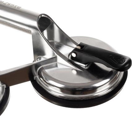 Dėl 150 kg keliamoji galios ir lengvos aliumininės konstrukcijos darbas su plokštėmis yra saugus ir efektyvus. Tekstūruota, neslystanti rankena pagerina valdymą, o kokybiška 7 mm storio guma užtikrina tvirtą prisisiurbimą.
