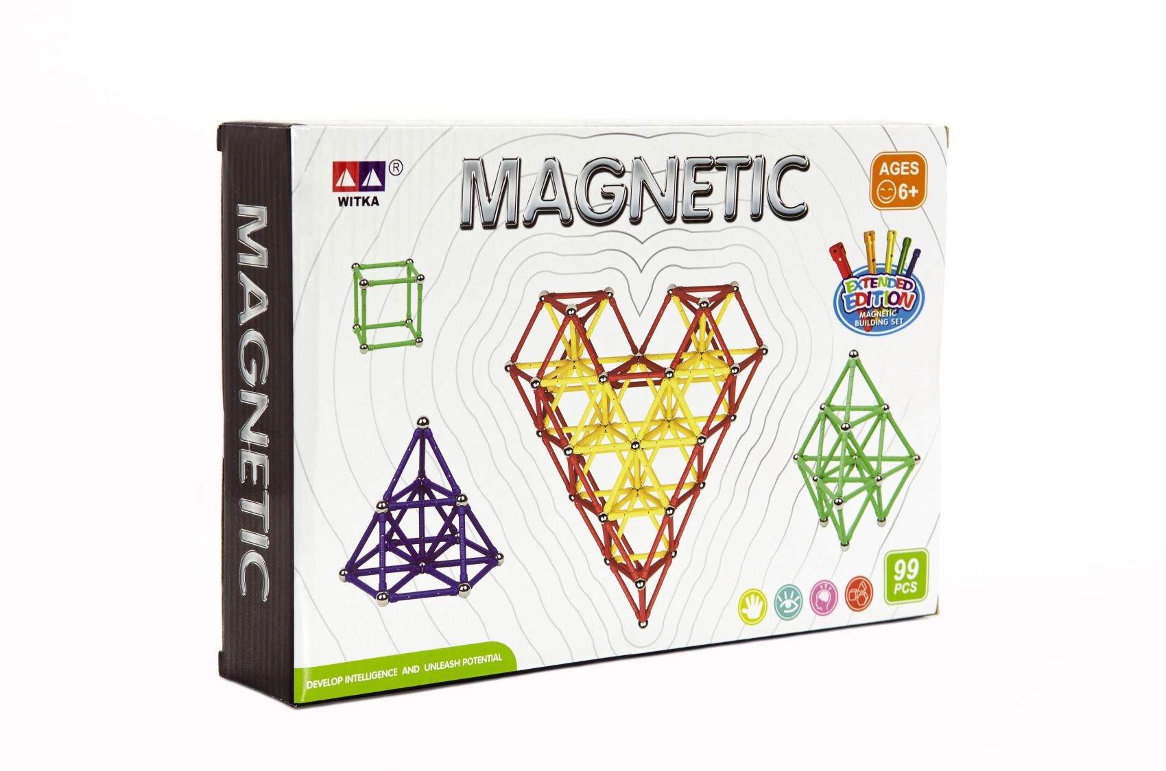 - 99 magnetinės dalys beribėms kombinacijoms ir kūrybiškam žaidimui.