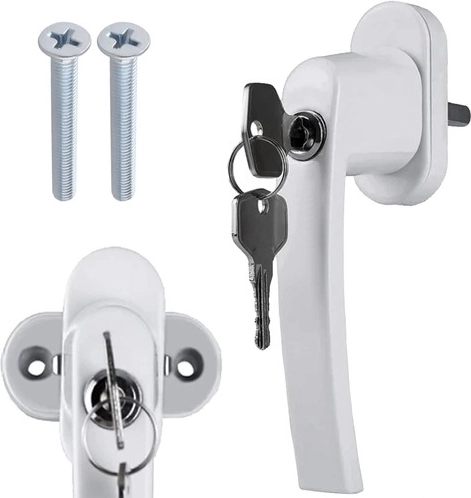 Ši balta lango rankena su užraktu raktu padidina namų saugumą – neleidžia vaikams netyčia atidaryti lango ir kartu apsunkina pašalinių patekimą. Tinka langams ir balkono durims, o dėl universalios sukimo krypties pritaikoma dešinei ir kairei varčiai.