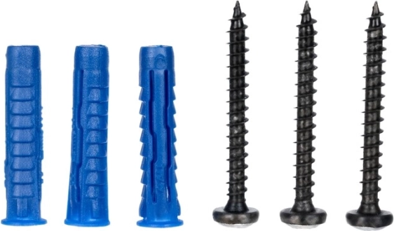 Pakuotėje yra kaiščiai ir varžtai – tereikia išgręžti 5 mm skersmens skyles ir tvirtai pritvirtinti kabyklą prie sienos.