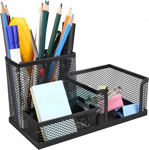 Atraskite tvarkos privalumus su mūsų juodu tinkliniu stalo organizatoriumi. Jo lengva metalinė konstrukcija sukurta taip, kad jūsų darbo erdvė išliktų švari ir efektyvi. Trys erdvūs skyreliai padeda sutvarkyti įvairius biuro reikmenis, kad galėtumėte susikaupti darbui ir padidinti produktyvumą.