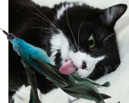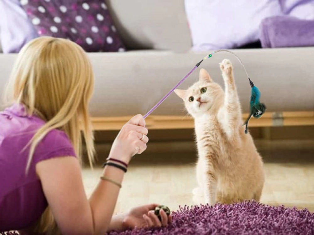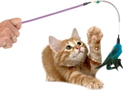 Ryškiaspalvės plunksnelės yra minkštos ir skatina kates bendrauti.
