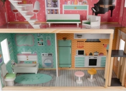 Šis erdvus lėlių namelis švelnių, neįkyrių spalvų skatina vaizduotę ir vaidmenų žaidimus. Atvira konstrukcija suteikia prieigą prie visų kambarių, todėl vaikai lengvai žais svetainėje, virtuvėje, miegamajame ir vonios kambaryje – yra ir balkonas.
