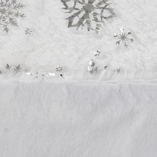 Šis sijonėlis papuoštas gražiomis sidabrinėmis žvaigždėmis ir snaigėmis, kurios suteikia kalėdinei dekoracijai išskirtinį, magišką įvaizdį.