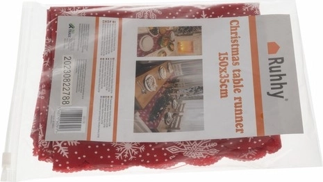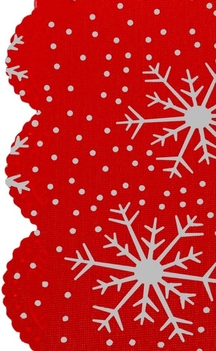 Kuria šventinę atmosferą: Šis takelis padės sukurti jaukią ir magišką nuotaiką jūsų namuose švenčių metu. Puoštas subtiliu baltų snaigių ir taškelių raštu, gražiai papildys raudoną staltiesę arba tradicinę baltą stalo dekoraciją.