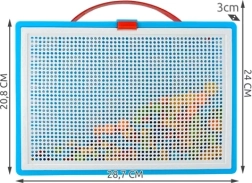 Ši kūrybinė mozaika su smeigtukais atveria vaikams spalvingą kūrybos pasaulį. Iš spalvotų smeigtukų lengvai gimsta drugeliai, gėlės ar saviti originalūs raštai. Rinkinys patogiame lagaminėlyje leidžia paprastai pernešti ir laikyti visas dalis, tad niekas nepasimes, o pramoga gali prasidėti bet kada ir bet kur.
