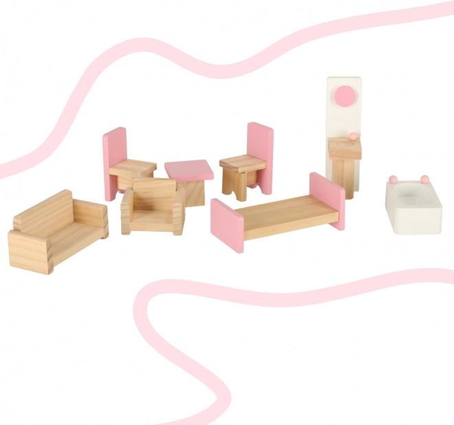 Pakuotėje rasite gausų medinių baldų rinkinį švelnių rožinių atspalvių, tad galite iš karto įrengti svetainę, vonios kambarį ir miegamąjį. Pramoga prasideda jau bendro surinkimo metu – montavimas paprastas, o visi reikalingi elementai įtraukti į pakuotę.