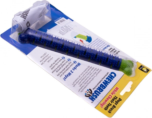 Tekstūruoti iškilimai valo žaidžiant, o vidinė erdvė leidžia dozuoti šunų dantų pastą efektyvesnei higienai.