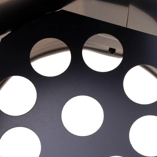 Šešiakampės ventiliacinės angos užtikrina stiprią trauką ir tolygų briketų įkaitimą per kelias minutes.