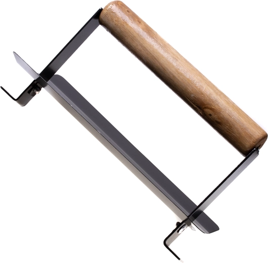 Tvirta medinė rankena su terminiu skydeliu saugo rankas nuo karščio ir palengvina įkaitusio kamino valdymą.