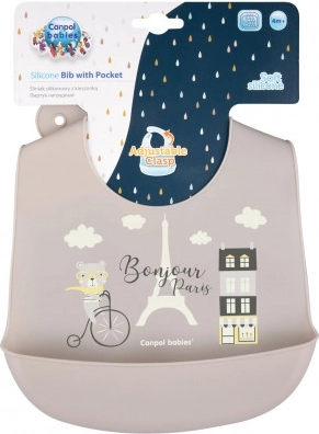 Elegantiškas smėlio spalvos seilinukas iš kolekcijos BONJOUR PARIS sukurtas patogiam maitinimui namuose ir kelionėse. Kokybiškas silikonas yra minkštas, patvarus ir atsparus vandeniui, todėl drabužiai išlieka švarūs ir sausi. Gili kišenė sulaiko krentančius maisto gabalėlius ir mažina netvarką prie stalo.