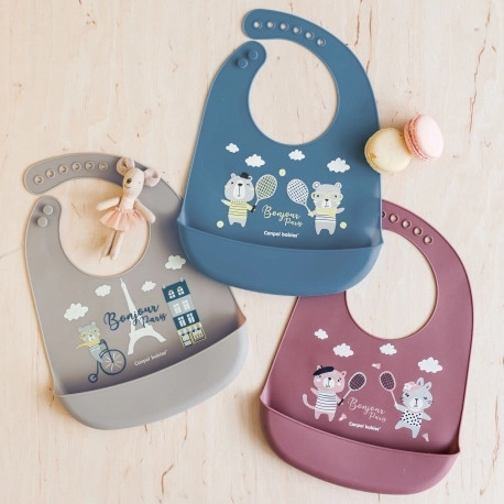 Dėl reguliuojamo užsegimo seilinuką lengva pritaikyti augančiam vaikui. Jis lengvai plaunamas ir tinkamas plauti indaplovėje. Šiuolaikiška spauda su paryžietiškais motyvais suteikia maitinimui žavesio ir pradžiugins tiek tėvus, tiek vaikus.